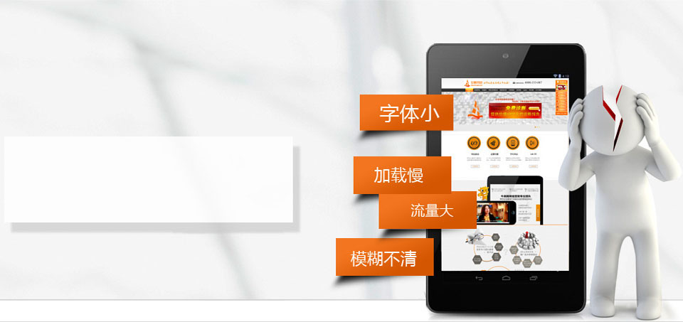 PC版網(wǎng)頁在手機(jī)上縮放后,字體很小,看不清楚 PC版圖片尺寸很大,頁面很大,占據(jù)很大的流量, 網(wǎng)頁加載很慢,而且浪費(fèi)錢